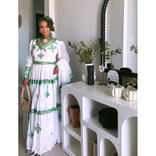 Connect with your culture and heritage through our handmade Traditional Habesha dress, Habesha kemis, Ethiopian dress, Traditional Ethiopian clothing, traditional Ethiopian wedding dress, and Eritrean dress. We make quality zuria for any occasion.