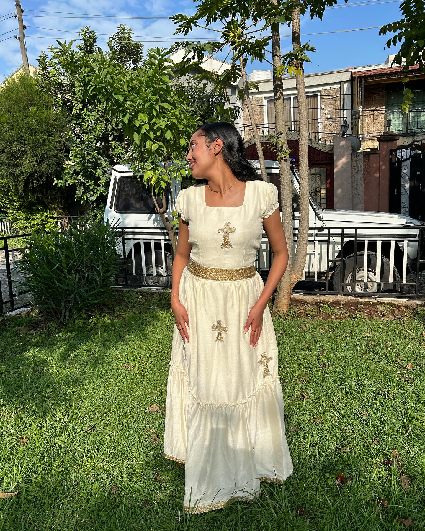 This short sleeve Habesha Kemis is thoughtfully designed to honor cultural identity while offering a light and comfortable feel. Its clean silhouette and refined finish reflect the essence of an Ethiopian dress, making it suitable for cultural celebrations, gatherings, and special occasions.