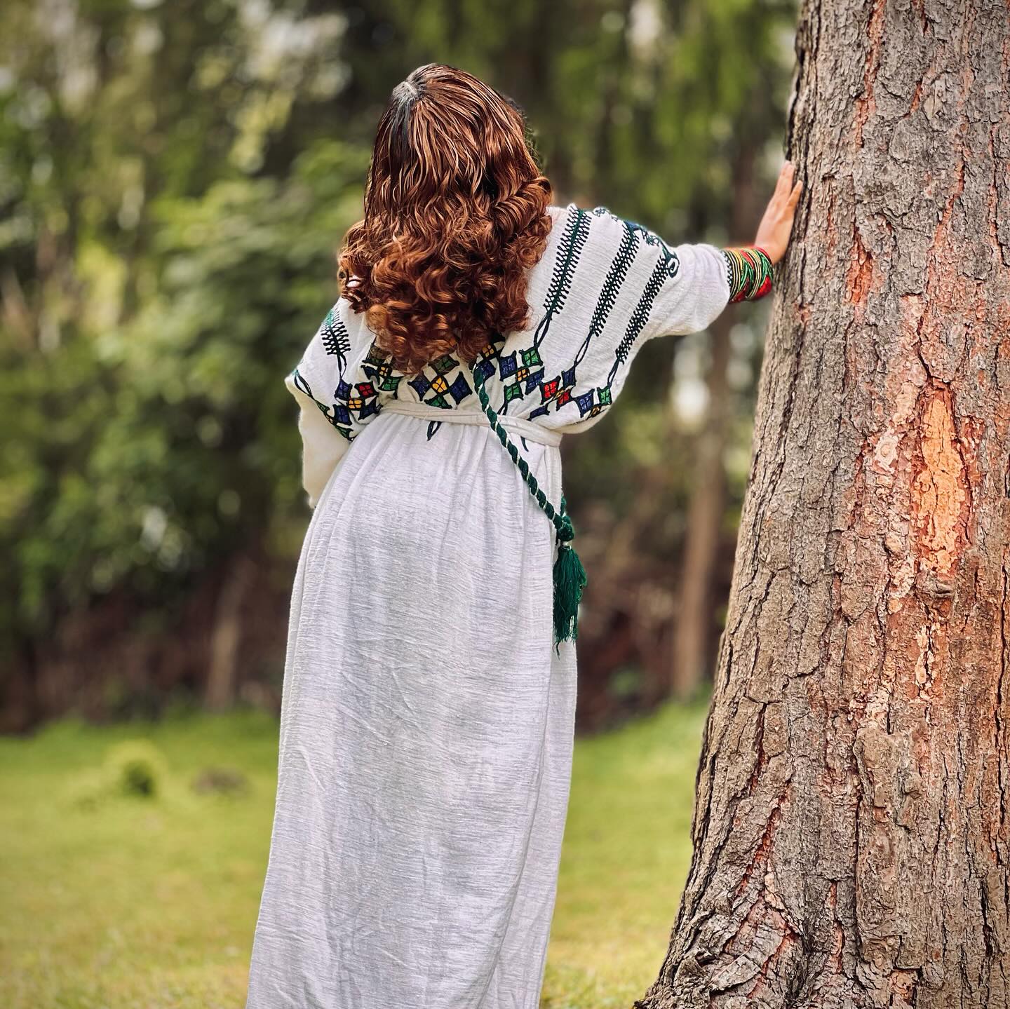 A true representation of traditional Ethiopian clothing, this dress features a flared skirt, wide cuffs, and ornate detailing that reflect the noble origins of the Gondar region. It’s ideal for weddings, Orthodox holidays like Timket, and any event that calls for elegance with cultural significance. The carefully layered embroidery and traditional cut offer both modesty and beauty in one unforgettable design.
